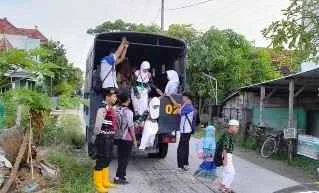 Personel Posko Siaga Banjir Polres Lamongan Antar dan Jemput Pelajar