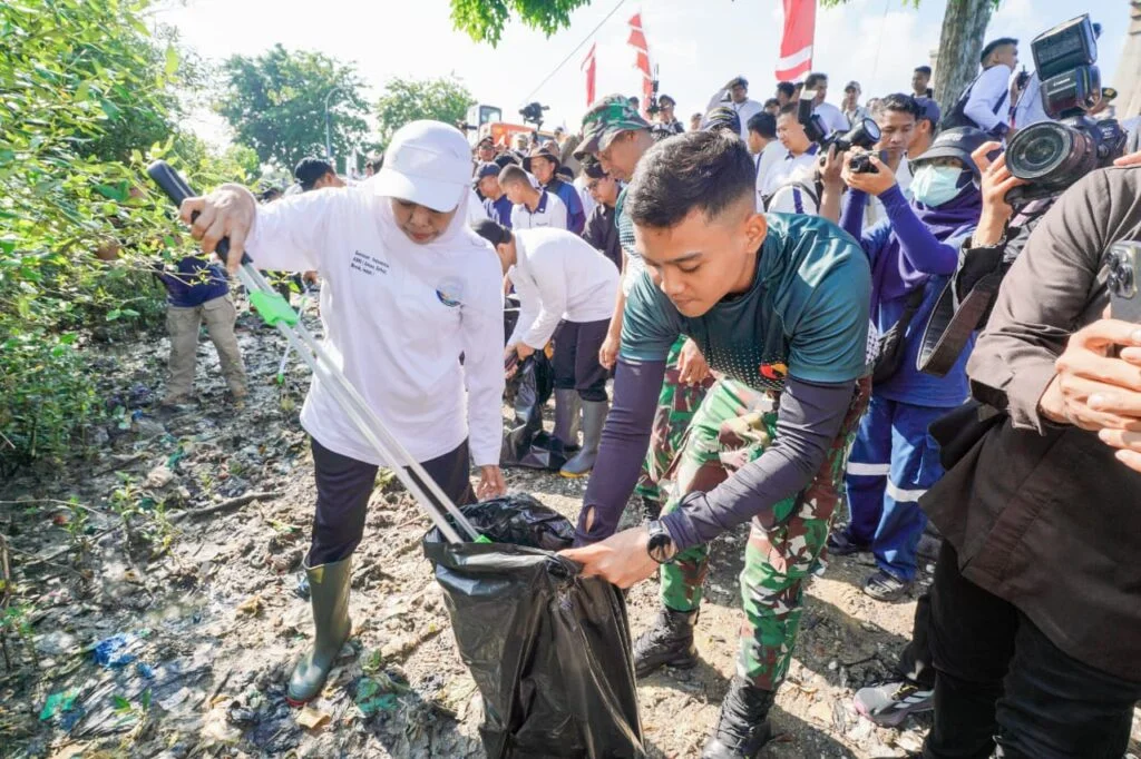 Khofifah Pimpin Aksi Bersih Pantai Tambak Wedi, Dorong Gerakan Sampah Massal di Jatim